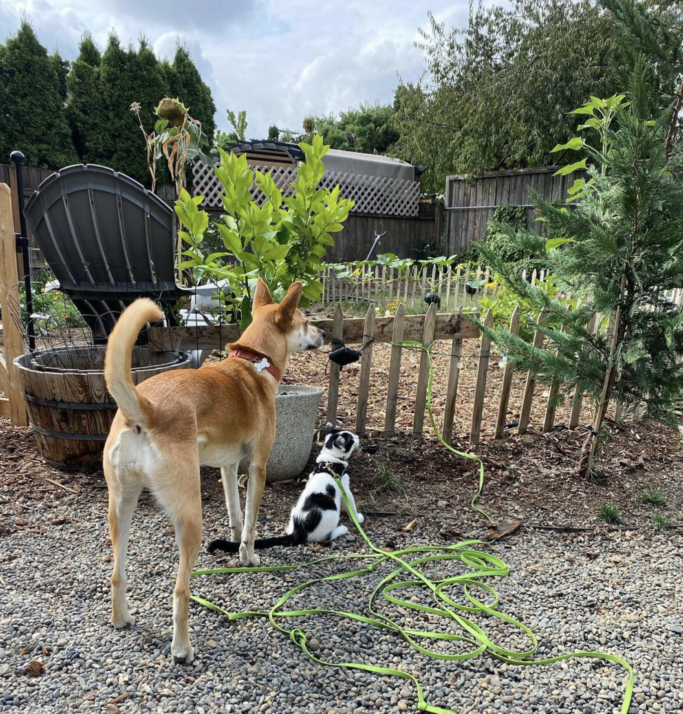 So, Josh has always just been planting the seed a little bit since we adopted her. And after losing our senior dog Pip, he was just like, I really, I wonder if she'd be good with a cat. Like it's just, maybe she'd be a cat dog. There are cat dogs. And we ran into our neighborhood cat like right outside our door, not like maybe two months ago.